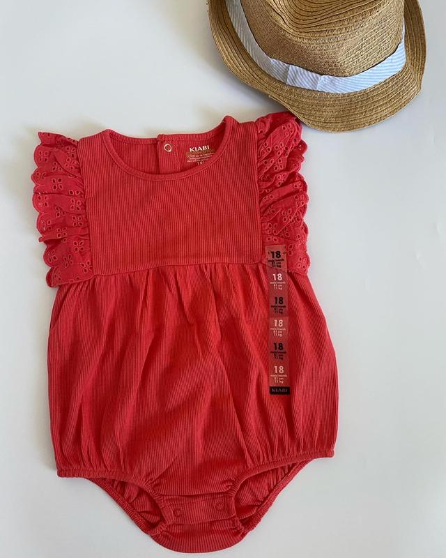 Яркий песочник Kiabi в рубчик. Кнопки на спинке и в зоне доступа к подгузнику. Размер 18 месяцев.