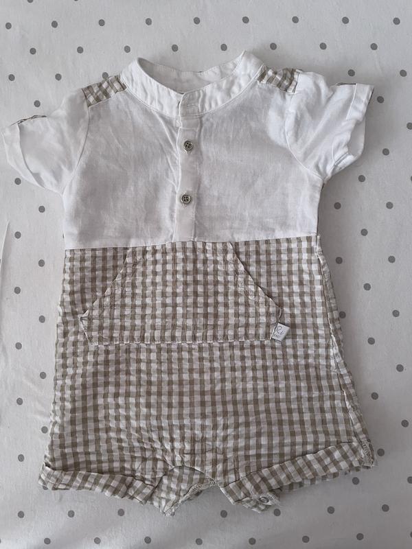 Стан идеален, одевали один раз и поняли, что уже слишком мал. Легкая ткань, идеально на лето. На 6-9 месяцев, до 74 см. Длина по спинке 39 см Ширина по грудях 26 см