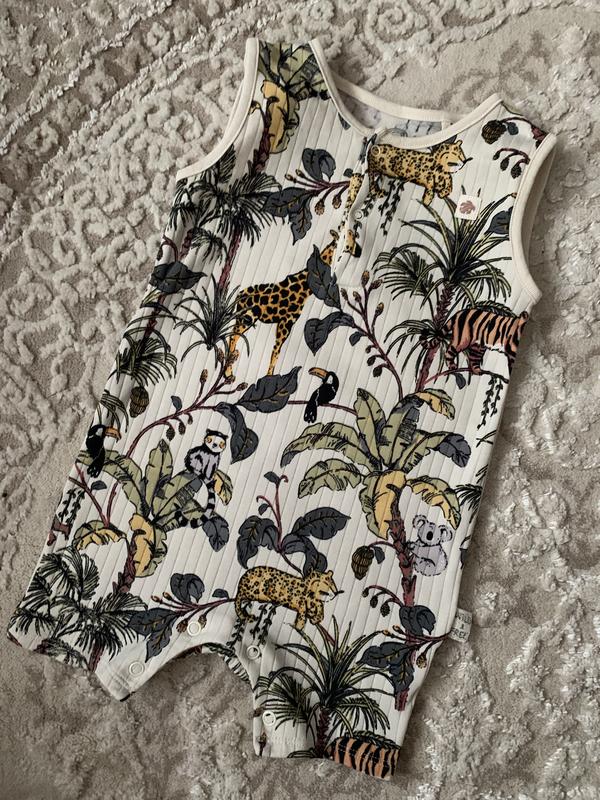 Песочник Next. Следов носки/ нюансов не имеет. Очень стильный. Тканина дихаюча, легка в рубчик. Кнопки все рабочие, без сарапин. Длина 45, пог 27. 80 размер