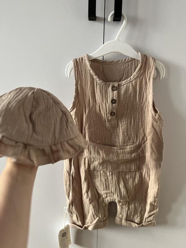 Песочник в сете с панамкой. Подойдет для мальчика или девочки - цвет универсальный бежевый. На возраст 9-12 месяцев.Новое!