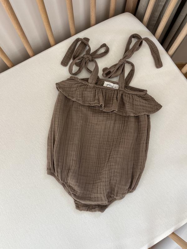Мусліновий боді пісочник на завʼязках Колір капучіно Стан як новенький Guapoo 6-9 міс 74 см Завʼязки регулюються на потрібну довжину