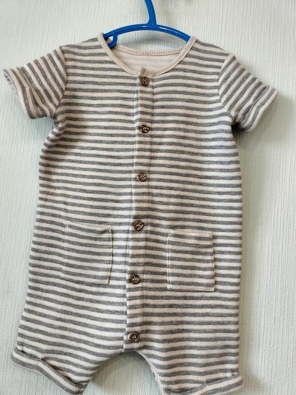 Новенький песочник на мальчика от 9-12мес. Длина от плеча до низа штанины 48см, длина по спине до памперса 39см, ширина под подмышками 29см. Не тонкий.