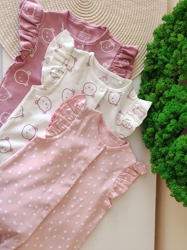 Новые песочники для девочек от Next. Невероятно приятная ткань к телу, легкая. Нежная кожа малыша будет дышать и швы не будут натирать. Легко переодевать, ведь кнопки между ножек и по всей длине, прочные, не отрываются. В наличии ✅ Размеры: 🐰68р (3-6 месяцев) все 🐰74р (6-9 месяцев) ❌ 📏Замеры: 68р: от плеча до памперса 39, полуобхват 24 74р: от плеча до памперса 40, полуобхват 25 🏷️ 395 грн/1шт Быстро отправлю по Новой почте🚚 С Ивано-Франковский возможен самовывиз или при встрече ☺️