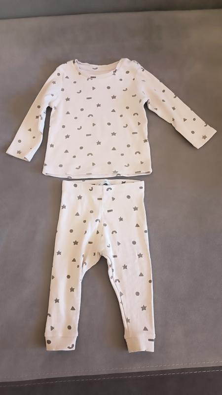 По бирке на 6-9 мес. Кофточка: длина 29, ПОГ 24, рукав 23. Штаны: длина 34, ПОТ 19 без натяжки тянутся отлично до 30.
