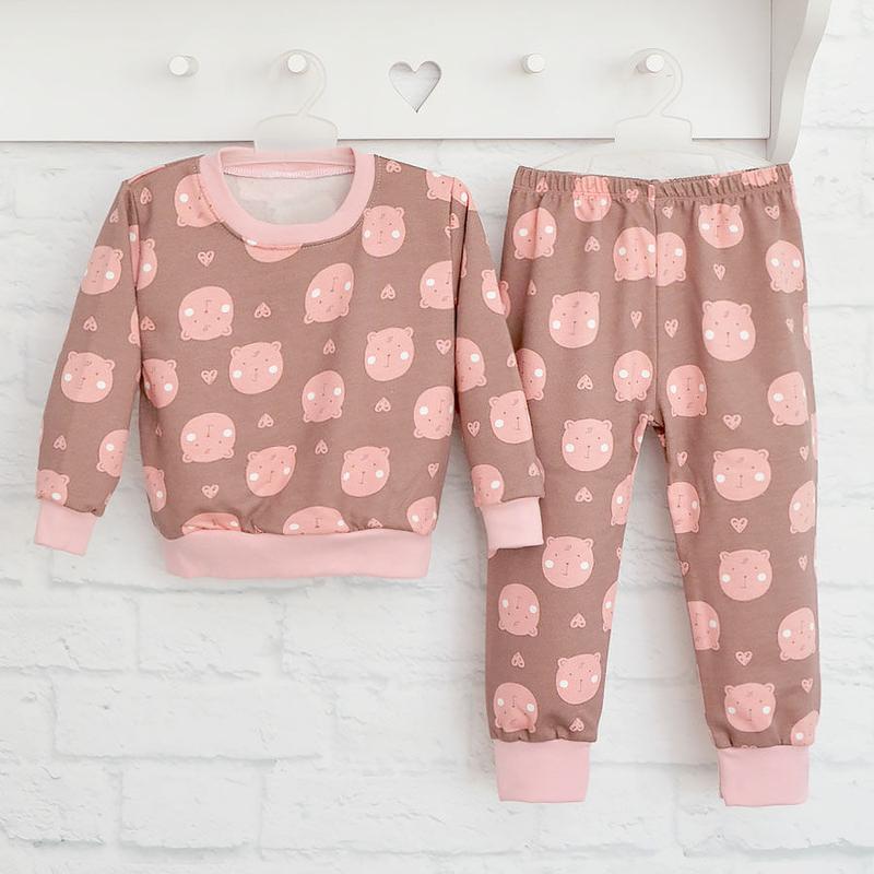 Теплая пижама принт мишка начес, 9-12 мес, 5-6 р, 80-86, 110-116