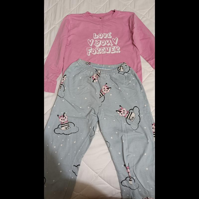 пижама детская на 5-6 лет. Длина 64, полуобхват талии от 24 до 36, полуобхват бедер до 40. Длина кофты 43, полуобхват 36, рукав 35.