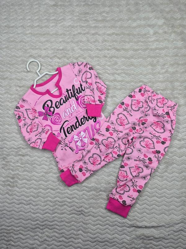 🌸 Пижама для девочки🌸 Стильная и комфортная пижама в нежном розовом цвете. Состоит из кофты с длинным рукавом и штанишек. Декорирована красивым цветочным принтом и милой надписью. ✨ Мягкая и приятная к телу ткань ✨ Удобные манжеты на рукавах и штанишках ✨ Эластичный пояс – не давит ✨ Идеально подходит для сна и домашнего отдыха
