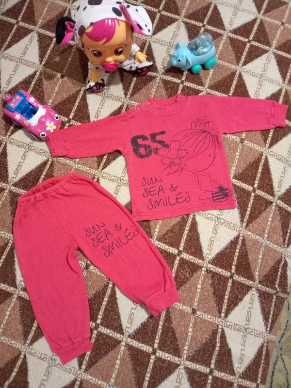 Пижама из тонкого трикотажноно хлопка. Размер 3-9 мес. Замеры на фото. Состояние хорошее без дыр и пятен.