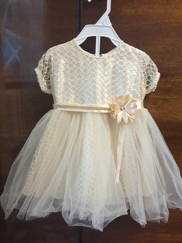 Шикарное платье золотого цвета для маленькой принцессы в идеальном состоянии. Было надето 1 раз на пару часов. По бирке размер 74