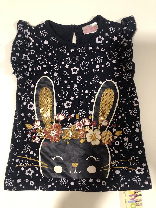 Дуже красива тунічка для дівчинки 12-18 місяців, гарно викладено паєтками вушка і квіточки