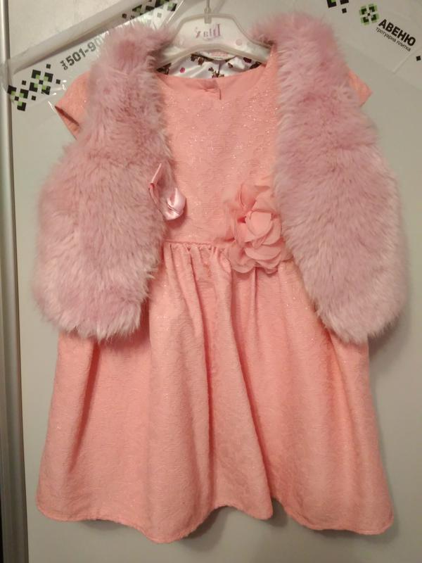 Красивое нарядное платье, размер указан 12-18 мес, будет до двух лет, состояние очень хорошее, есть слои подьюбников, бренд mothercare .Жилетка, размер 1.5-2 года, ( будет дольше), состояние идеальное, бренд H&M Платье: Длина от плеча 48 ПОГ 27-28 ПОТ 27