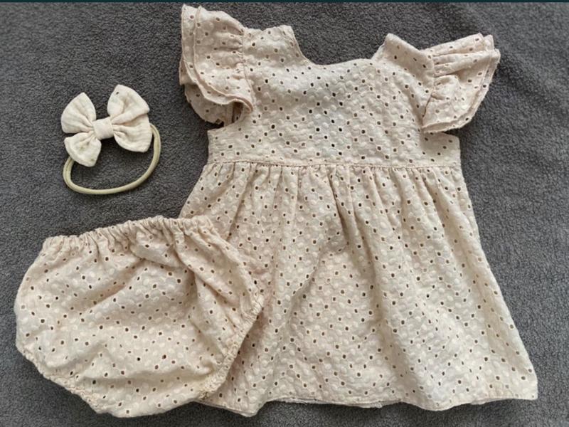 Набір : плаття , трусики та пов’язка на голову , брали для фотосесії , стан нового , розмір 9-12 міс, зріст 74-80