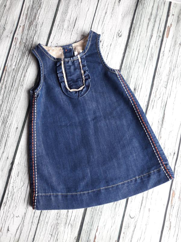 Джинсовой платье для девочки, ззади на пуговицах. Длина изделия 45 см полуобхват груди 29 см.
