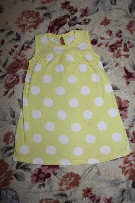 Приятное и легкое летнее платье желтое в горошек. По бирке 12-18 мес, 81-86 см Есть несколько мелких пятен, особо не заметные.