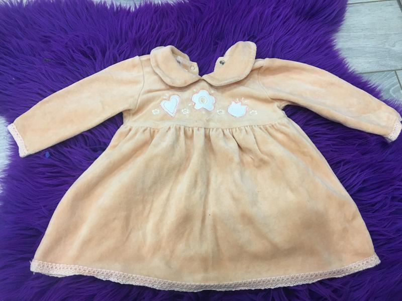 Очень милое велюровое платье от украинского производителя ТМ Бэмби, в носке было пару раз. Смотрится очень нежно. Размер 74