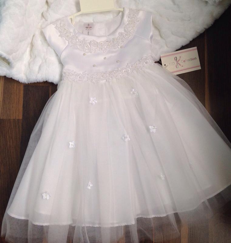 Новое очень нарядное , белоснежное платье. Сзади красивые пуговки- жемчужинки. ПОТ 26 см Примерно 1,5-2 года Нам на 2 года оказалось мало