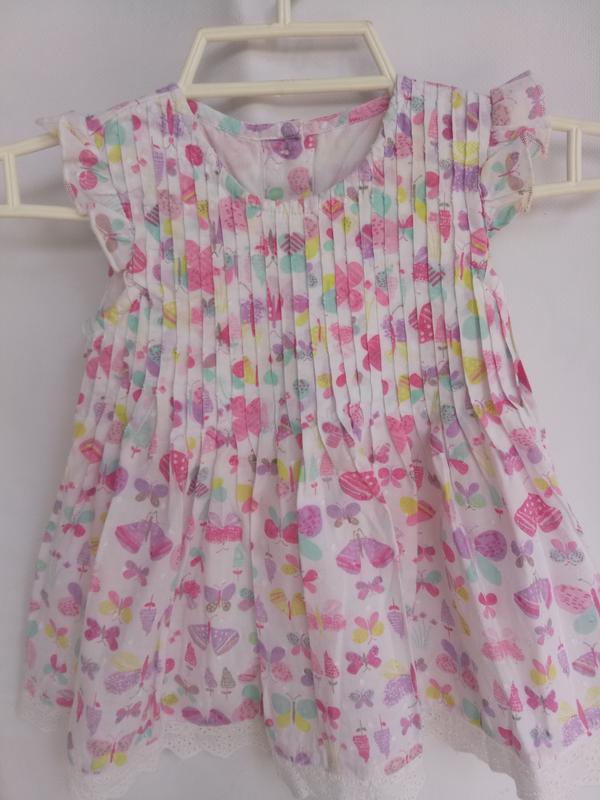 Миленькое платье, легенькое. Размер 9-12,по груди 27см,плечи 21см,длина 37см+2см оборка.