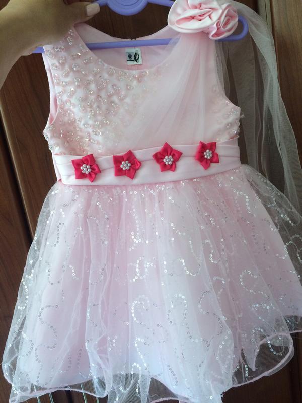 Шикарное нарядное платье на девочку 1 года.Р 12 Мес.Декорировано паниками и шлейфом.Нежно-розовое.Смотрится шикарно.В идеальном состоянии,одевали один раз на фотосессию.Фото на ребёнке и замеры по запросу .