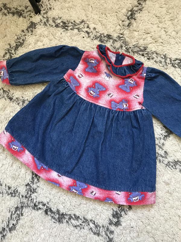 Джинсовое платье размером 9-12 мес,со вставками байки,состояние отличное