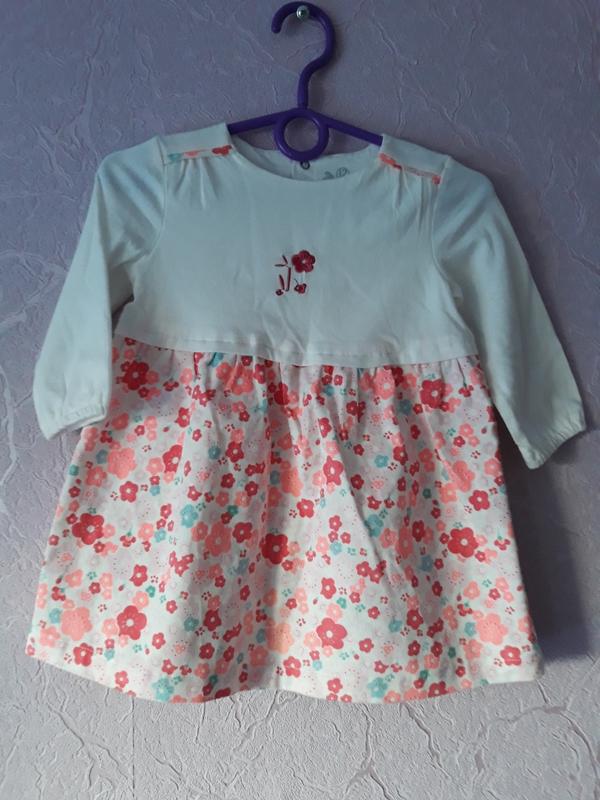 Красивое платье, хлопок, на девочку 12 мес, рост 74 см.Длина 45 см, длина рукава 26 см, в груди 27 см.