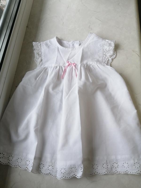 Платтячко з простенького матеріалу,вільного крою,з кружевними нарукавничками,внизу також візеруночки.Стан ідеальний. .Довжина 41,5см,обхват на грудях 45см,плечики 23см,довжина проміжку рукавчика 13,5см.