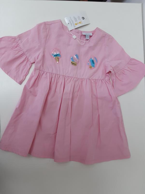 Платье розового цвета. Украшено на груди фигурами мороженого, выложенного из пайеток. Размер - 86, на 18-24мес. Состав: 100% хлопок. !ткань не тянется! Фирма - Fagottino, OVS, Италия. Замеры: ширина подмышками- 26,5см длина - 45см Новое, с бумажной биркой. Цена - 200грн