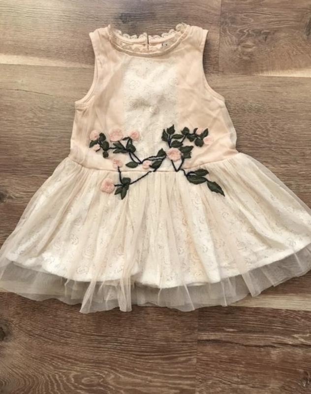Очень красивое платье с вышивкой. Состояние нового, одето раз на мероприятие По бирке на 9-12, но оно больше намного, мы одевали в 2 года Плечи - 20 Подмышками- 25 Длина- 46,5