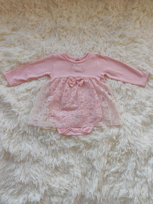 Плаття- боді на малишку персикового кольору. Довжина 34 см, ширина 22 см, довж.рукава 21 см, тканина тягнеться.