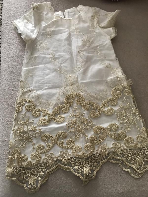 Нарядное платье для девочки. Указан размер 104см. Надевали на годик. Полуобхват по груди 29см, плечи 22см, длина 54-60см{кружево идет волной}. Платье должно быть на ребенке длинное.