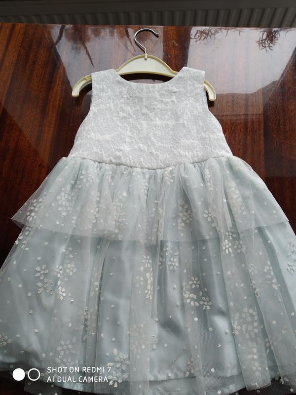 Прекрасное платье для вашей дочурки фирмы TU, на возраст 1,5-2роки, полуобхват груди 27см, длина 51см, пояс завязывается.