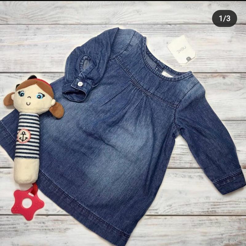 Джинсовое платьице с длинным рукавом на девочку 3-6 месяцев ТМ Next. Состав 💯 котон Размер 62-68