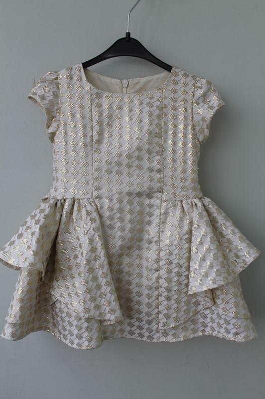 Бренд Sugal Plum 9 - 12мис, 1 рочек 74-80 см рост Замеры: длина платья - 42 см ПОГ- 23 см белый, злотистый цвета, покрой баска для маленькой принцессы.