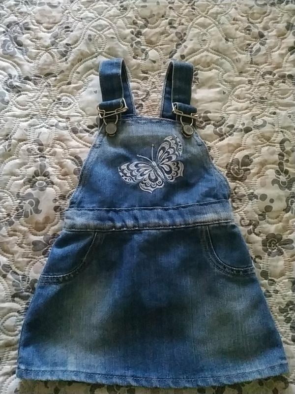 Джинсовый сарафан с вышивкой Бабочка. 61% хлопок, 39% полиэстер.