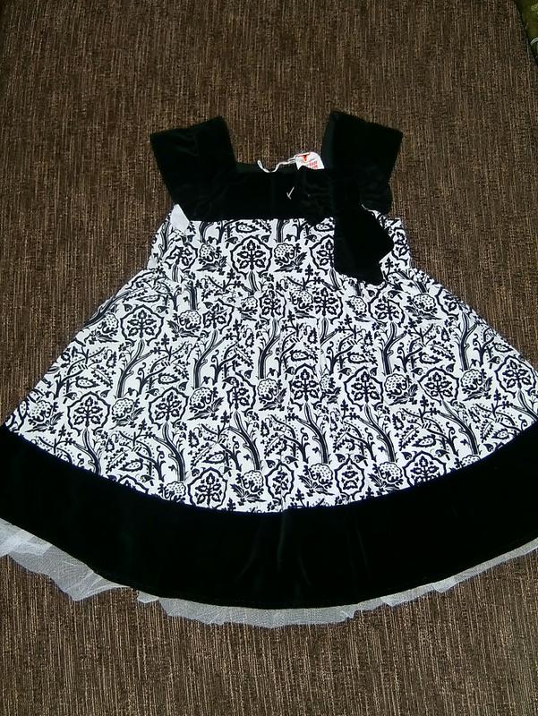 Очень красивое платье английского бренда Mini Mode. Натуральная ткань, по вороту и подолу отделано бархатом, на подкладе. Подклад снизу отделан белым фатином. Длина платья 42 см.