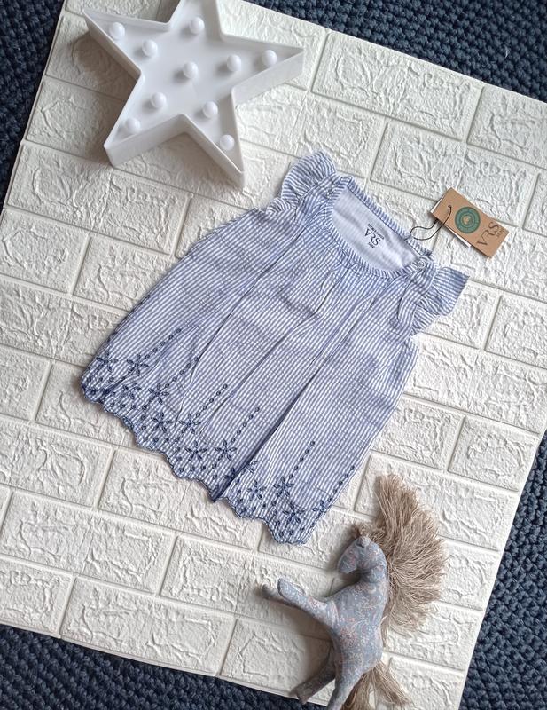 Летний легкий сарафанчик-туничка. По низу украшен вышивкой. Рукавчики воланчиками. На плече на кнопочке. Размеры: 80, 86, 92. Р. 80- длина 36-37 Р.86- длина 39-40 Р.92- длина 40-41