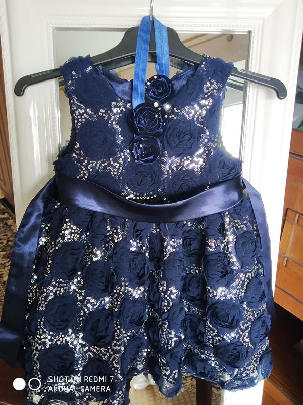Прекрасное платье с повязкой для вашей красавицы темно - синего цвета фирмы Cinderella на 24 месяца,2 года. На спинке замочек, пояс завязывается и подчеркивает талию.Замеры: полуобхват груди 26,5 см общая длина 46 см