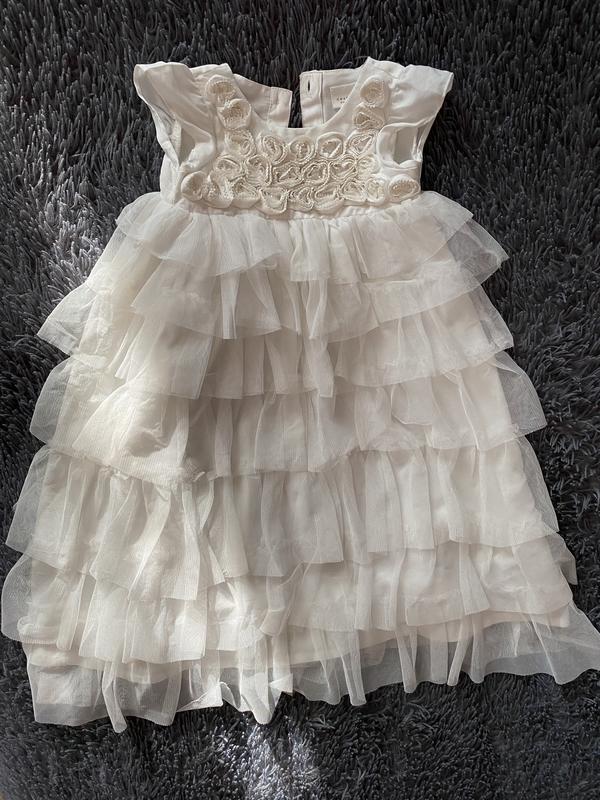 Біла пишна сукня, довга. Одягалась 2 рази. Пише що до 3 місяців, але якщо сильно крихітна дівчинка, то можна й на більше.