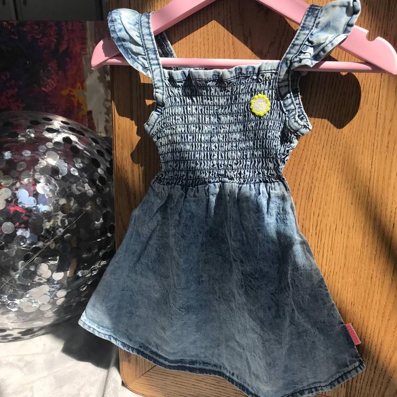 Просто крутезный котоновый сарафанчик, сделанный под джинс от Vingino. Очень легкнький, имеет эластичный верх, которые хорошо тянется и милые рюши на брительках. Размер 74