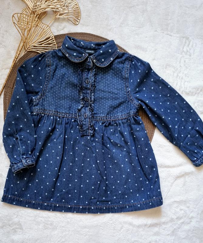 Стильное джинсовое платье ддя девочки из облегченного коттона на 12 - 24 м. Состояние отлично, без каких-либо нюансов. Длина - 42 Рукав - 33 ПОГ - 28