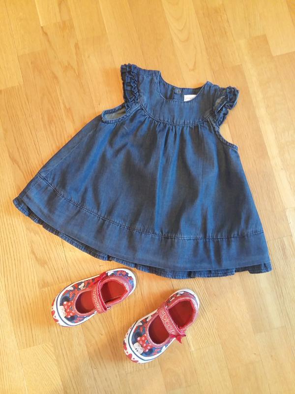 Джинсовое пышное платье сарафан с рукавчиками-рюшами Pumpkin Patch для малышки до 6 месяцев. Позже можно носить как туничку. Замеры: плечи-18, грудь-30, длина по спинке-36.