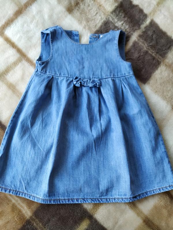 Джинсовое платье в очень хорошем состоянии,но есть нюанс ( пятнышко,на последнем фото показала). 12-18 месяца