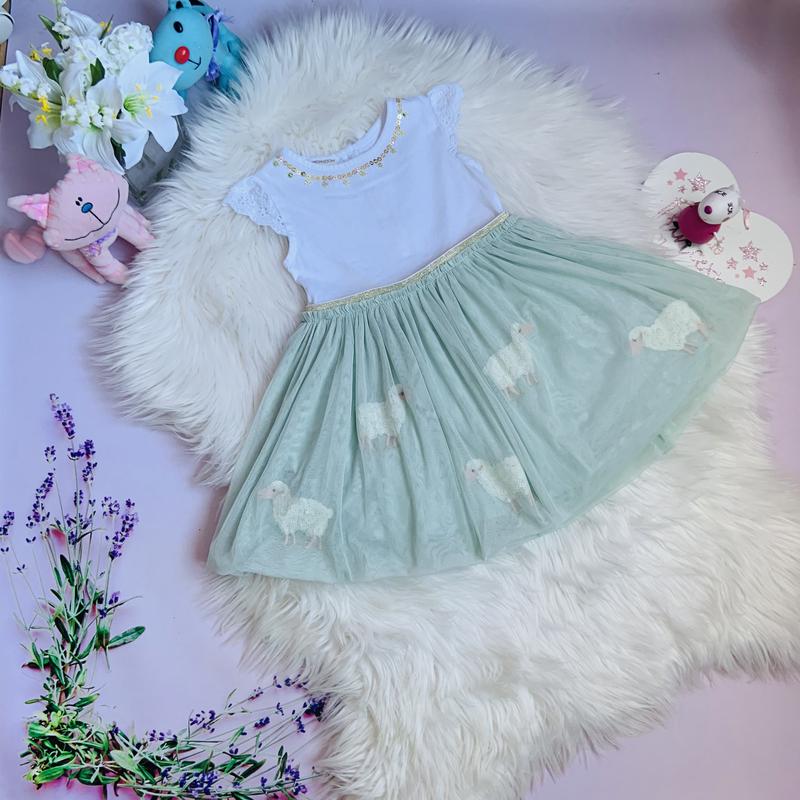 красивое нарядное платье Monsoon девочке 1-1.5 года состояние отличное. Цена - 200 гр Замеры: Общая длина от плеча-50 см , ширина по спинке под рукавчиками - 26 см, длина от плеча до юбочки-20 см