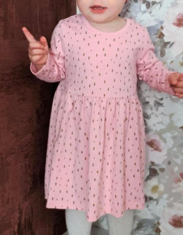 Милейшее трикотажное платьице с золотистым принтом ❤️ Состояние идеальное, носили мало и аккуратно - надели буквально пару раз, выросли - делимся 🤗 Длина 48 Ширина подмышками 28 Рукав 27.5