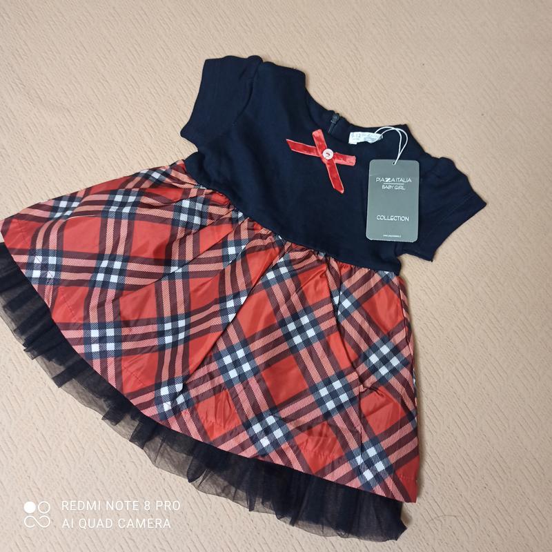 Плаття від фірми PIAZZA ITALIA.Зростання 78 см,на 9-12 місяців.Верх 100% бавовна, всередині баечка.Низ 100%поліестер,є х/б спідниця до нього пришита мереживна оборка.Довжина 39 см, ширина 25 див. Сзати застібка-прихована змійка.