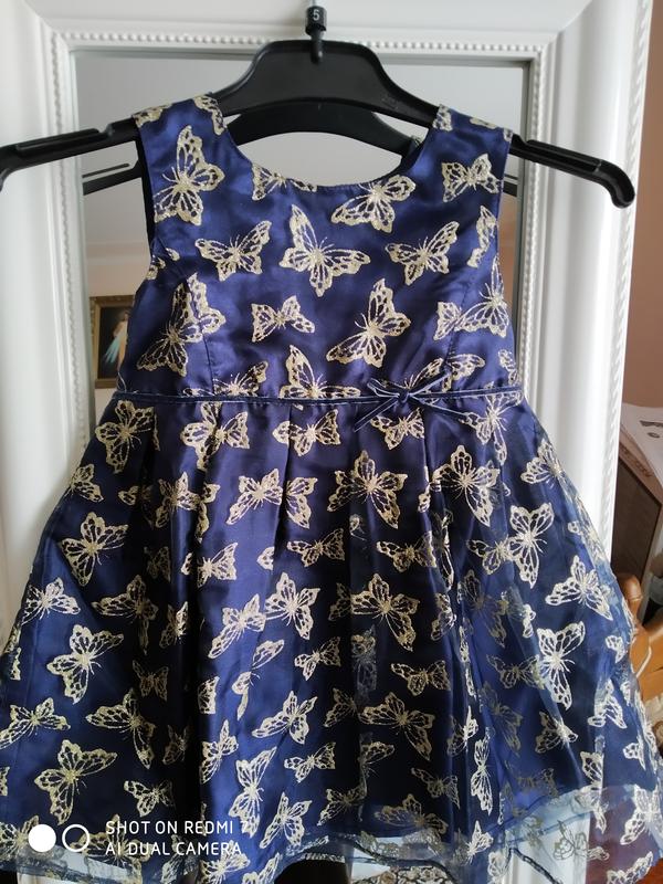 Хорошее платье темно синего цвета для вашей красавицы фирмы Monsoon на возраст 12-18 месяцев, на спинке пуговицы, пояс завязывается и подчеркивает талию.Замеры: полуобхват груди 26 см от плеча до талии 16,5 см от талии до низа 30 см общая длина 46,5 см