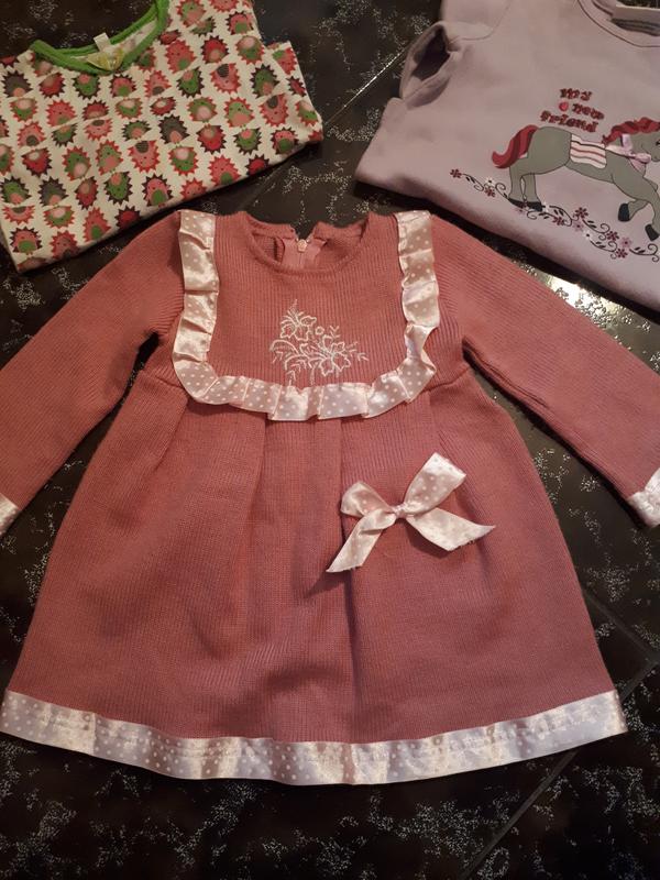 Платье из мягкого трикотажа порадует Вашу милашку, а в подарок кофточка с лошадкой и кофточка с ёжиками. ПОГ 24, длина 40, рукав 26. Дефект-фото 3. АКЦИЯ!!! (читать условия в моём профиле "о продавце").