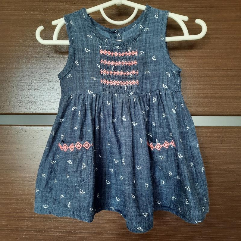 Легчайшее летнее платьице для девочки 3-6м, будет дольше. Состав хлопок, цвет на фото искажен - в реальности наиболее приблежен к третьему фото - Синее с ярко розовой вышивкой. Состояние отличное
