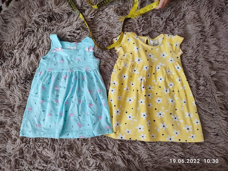 Продам сукню, сарафан на дівчинку. Є плямки ,які показала на фото. Можна спробувати вивести. Довжина блакитного 42 см; ширина під ручками 24 см. Довжина жовтого 42,5 см; ширина під ручками 27 см. Ціна за 2 шт