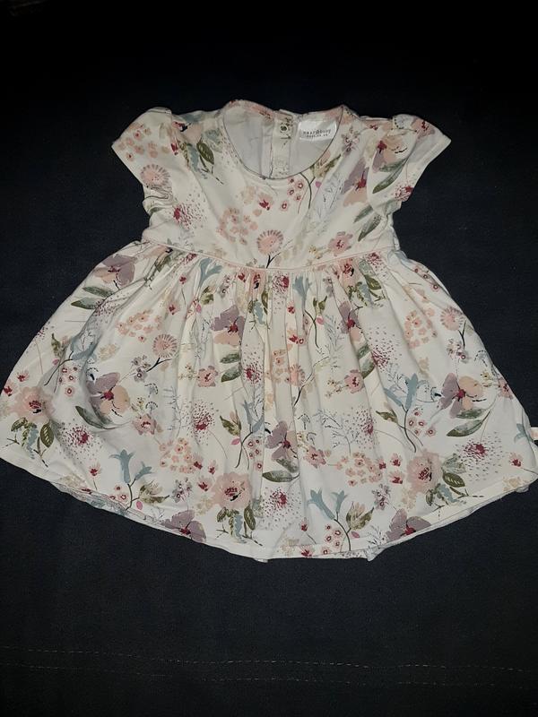 Миленькое платьице на 6-9мес.Длинна изделия 37см, плечи 20см, ширина подмышки 23см.