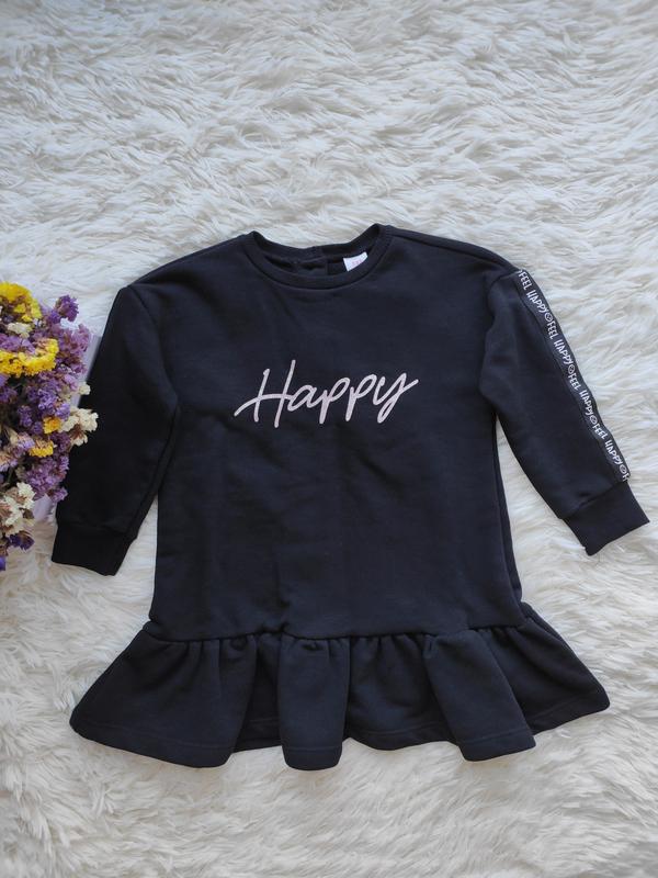 Плаття тепле з трьохнитки на дівчинку 12-18 міс. (80-86 см), може бути довше. Довжина - 45 см, ширина - 31 см, довжина рукава - 29 см.